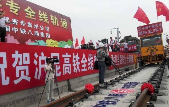 16日下午,沪昆高铁贵州西段全线完成铺轨施工,沪昆高铁西段全线贯通。