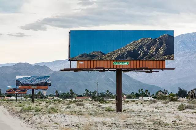 作为desert X展的一部分,科切拉谷地目前正在举办一场特别的户外广告牌展览。 jennifer bolande在沙漠之中安置了一系列广告牌,它们很好地与周围沙漠景观融为一体。当你驾车驰骋在加州的乡间小道上,肉眼可见距离便可以观赏如电影动画般连续闪过的神奇画面。实际上它们是美国剃须膏品牌burma-shave的广告,通过图形语言的处理,每支广告牌呈剃须刀的形状。而广告也是抓住了生活中大家最容易忽略的自然风光来大做文章,当大家透过车窗观赏自然风光时,自然就会察觉出现实中的景色和人造广告牌的差异。